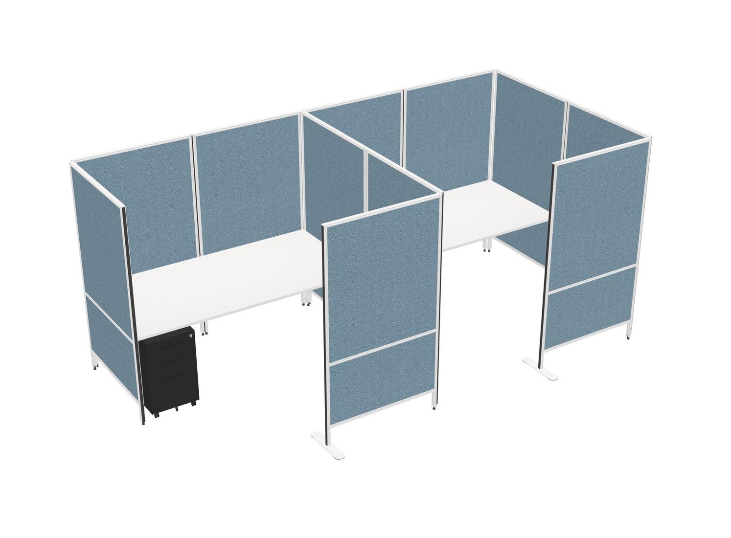 White Flexible Panel System With Privacy For 2 + Metal Mobile Drawers