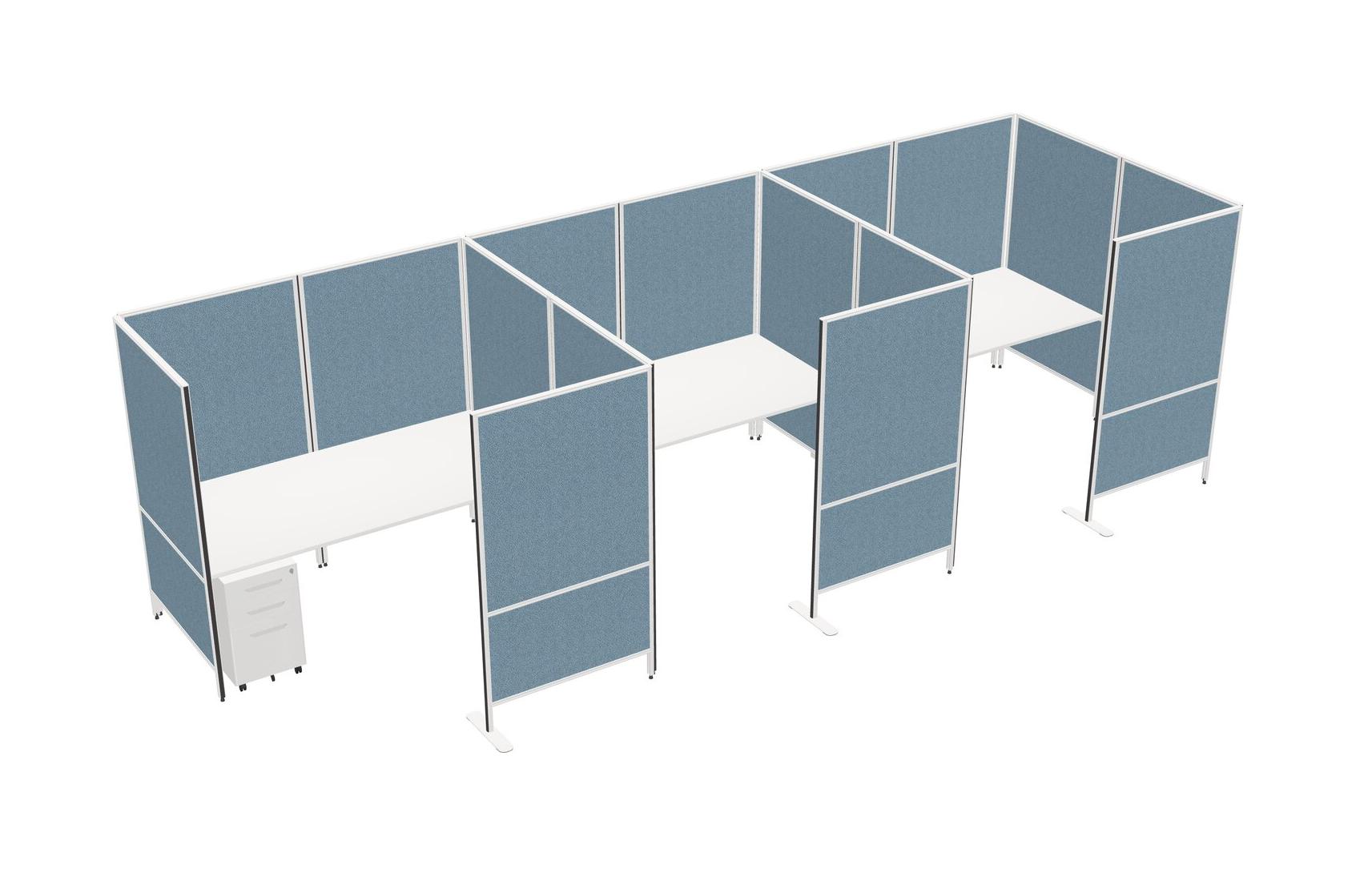 White Flexible Panel System With Privacy For 3 + Metal Mobile Drawers