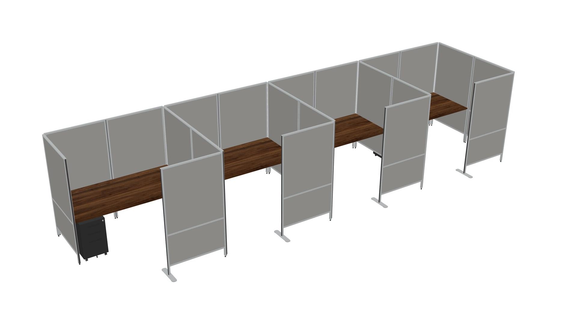 Columbia Walnut Flexible Panel System With Privacy For 4 + Metal Mobile Drawers