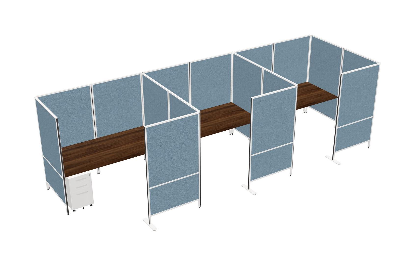 Columbia Walnut Flexible Panel System With Privacy For 3 + Metal Mobile Drawers