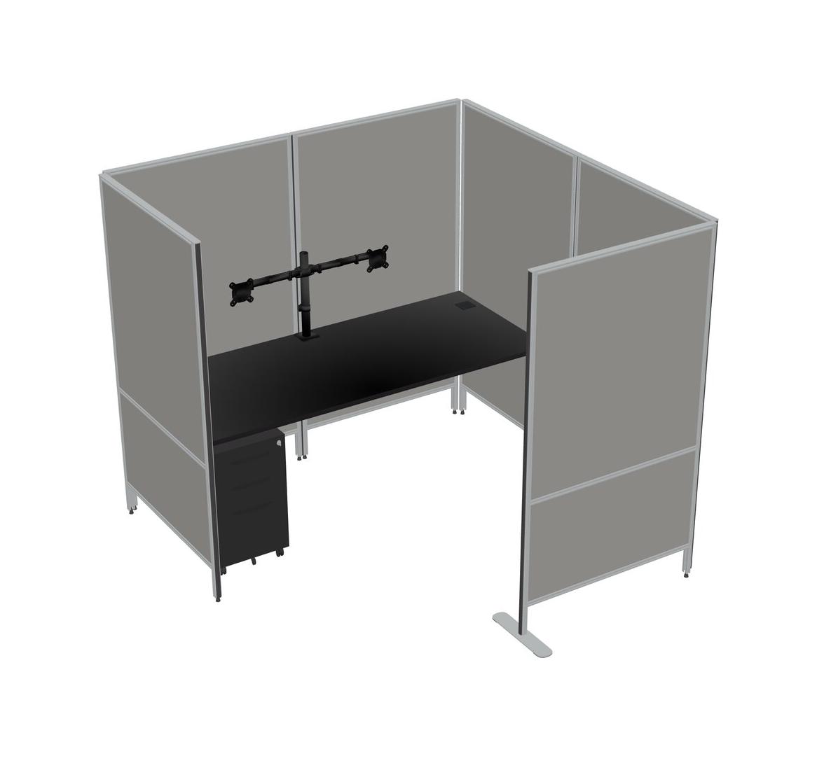 Black Flexible Panel System With Privacy For 1 + Metal Mobile Drawers + Monitor Arm (double Arms)