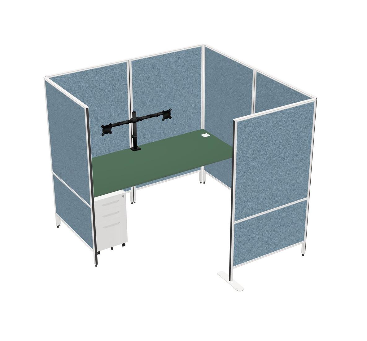 Green Flexible Panel System With Privacy For 1 + Metal Mobile Drawers + Monitor Arm (double Arms)