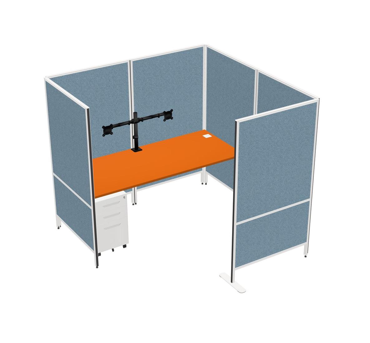 Orange Flexible Panel System With Privacy For 1 + Metal Mobile Drawers + Monitor Arm (double Arms)
