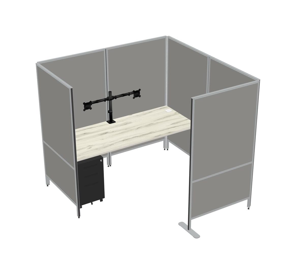 Heinne Holz Flexible Panel System With Privacy For 1 + Metal Mobile Drawers + Monitor Arm (double Arms)