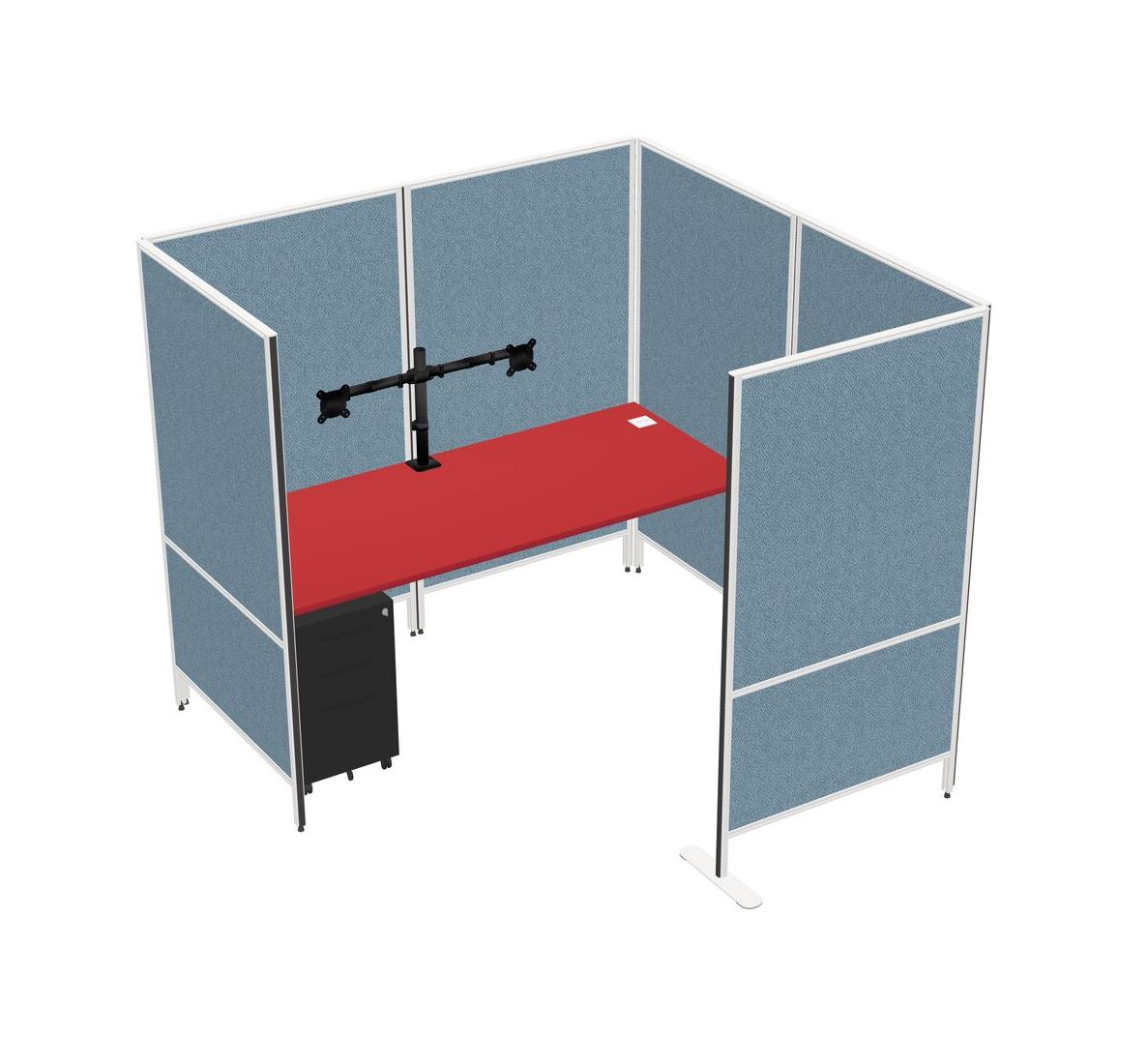 Prism Red Flexible Panel System With Privacy For 1 + Metal Mobile Drawers + Monitor Arm (double Arms)