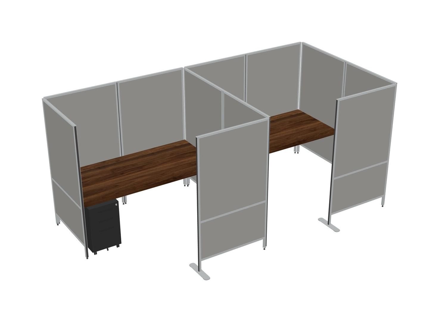 Columbia Walnut Flexible Panel System With Privacy For 2 + Metal Mobile Drawers