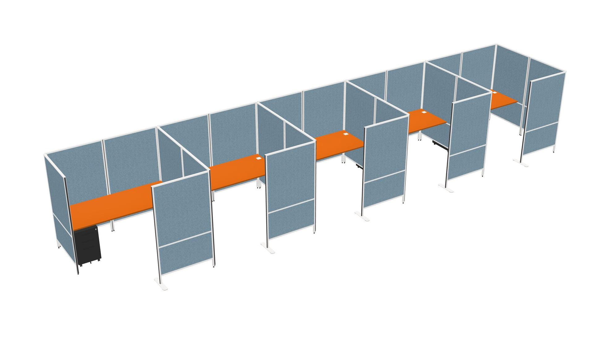 Orange Flexible Panel System With Privacy For 5 + Metal Mobile Drawers