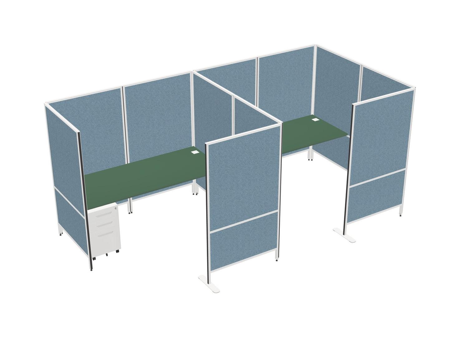 Green Flexible Panel System With Privacy For 2 + Metal Mobile Drawers