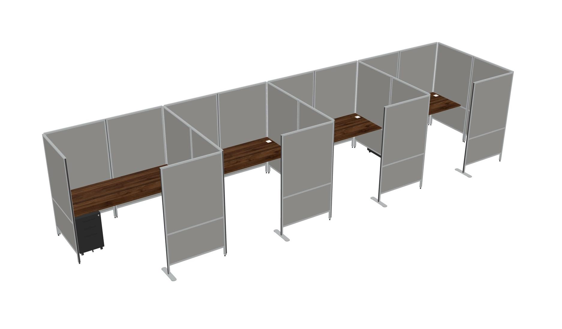 Columbia Walnut Flexible Panel System With Privacy For 4 + Metal Mobile Drawers