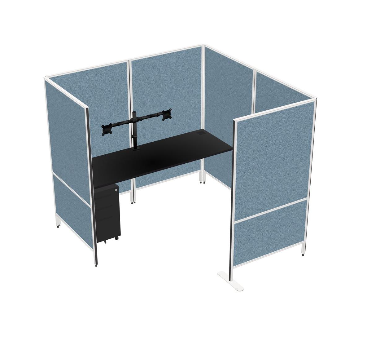 Black Flexible Panel System With Privacy For 1 + Metal Mobile Drawers + Monitor Arm (double Arms)