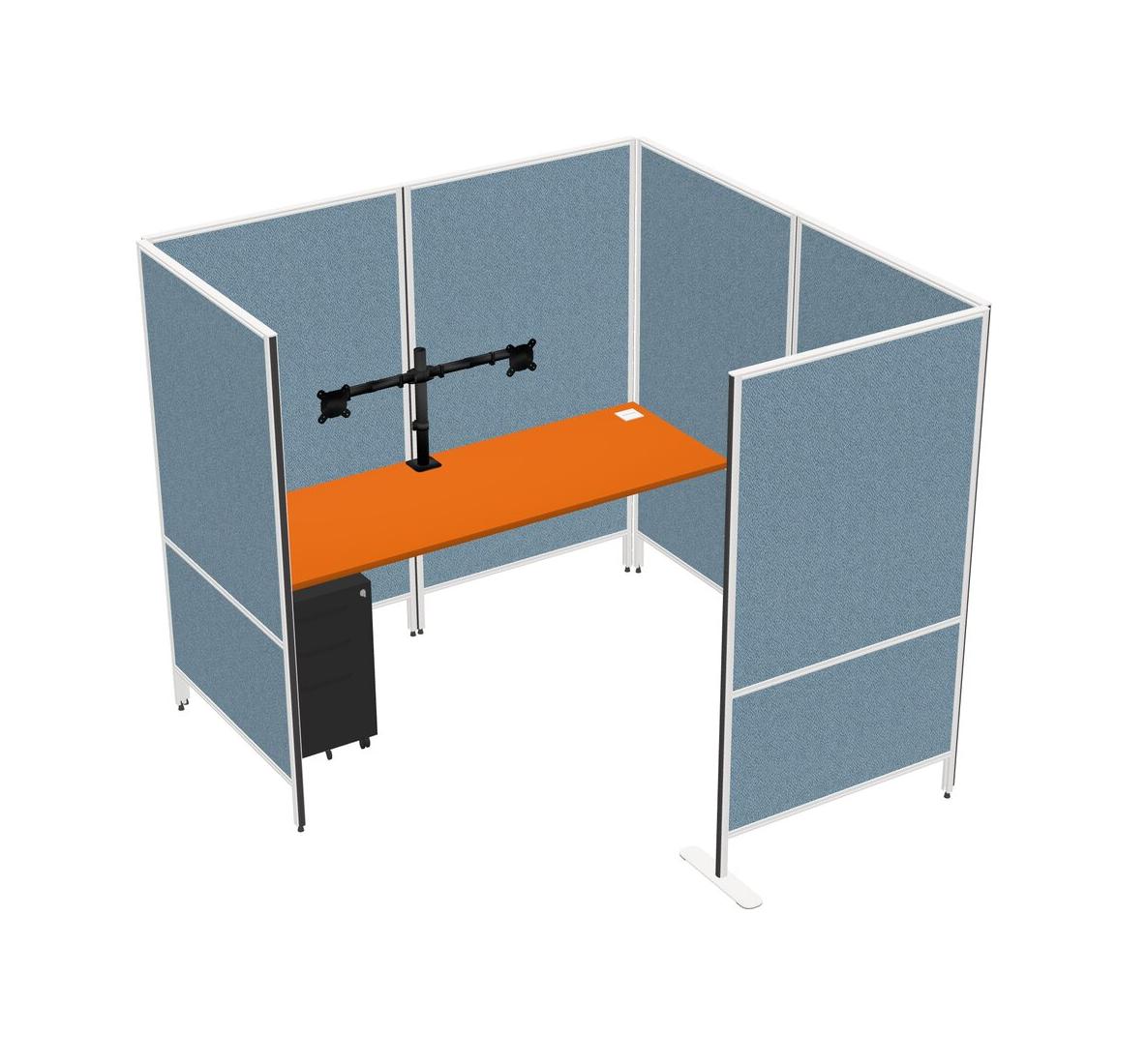 Orange Flexible Panel System With Privacy For 1 + Metal Mobile Drawers + Monitor Arm (double Arms)