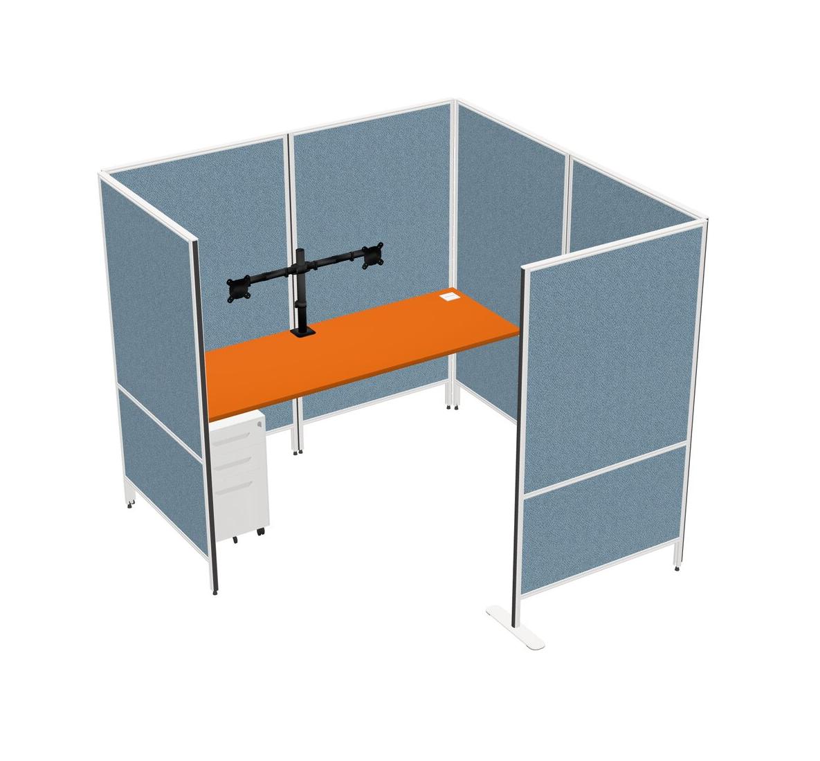 Orange Flexible Panel System With Privacy For 1 + Metal Mobile Drawers + Monitor Arm (double Arms)