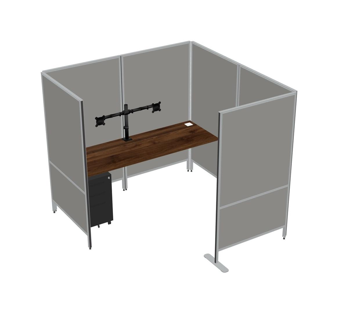 Columbia Walnut Flexible Panel System With Privacy For 1 + Metal Mobile Drawers + Monitor Arm (double Arms)