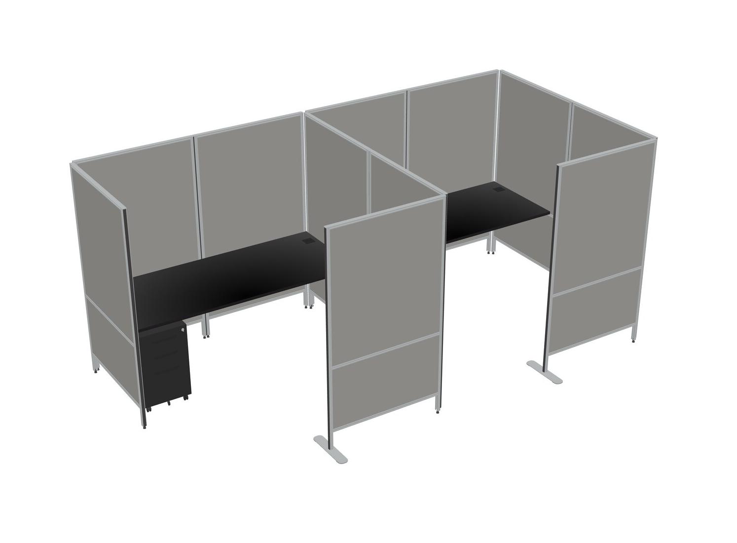 Black Flexible Panel System With Privacy For 2 + Metal Mobile Drawers