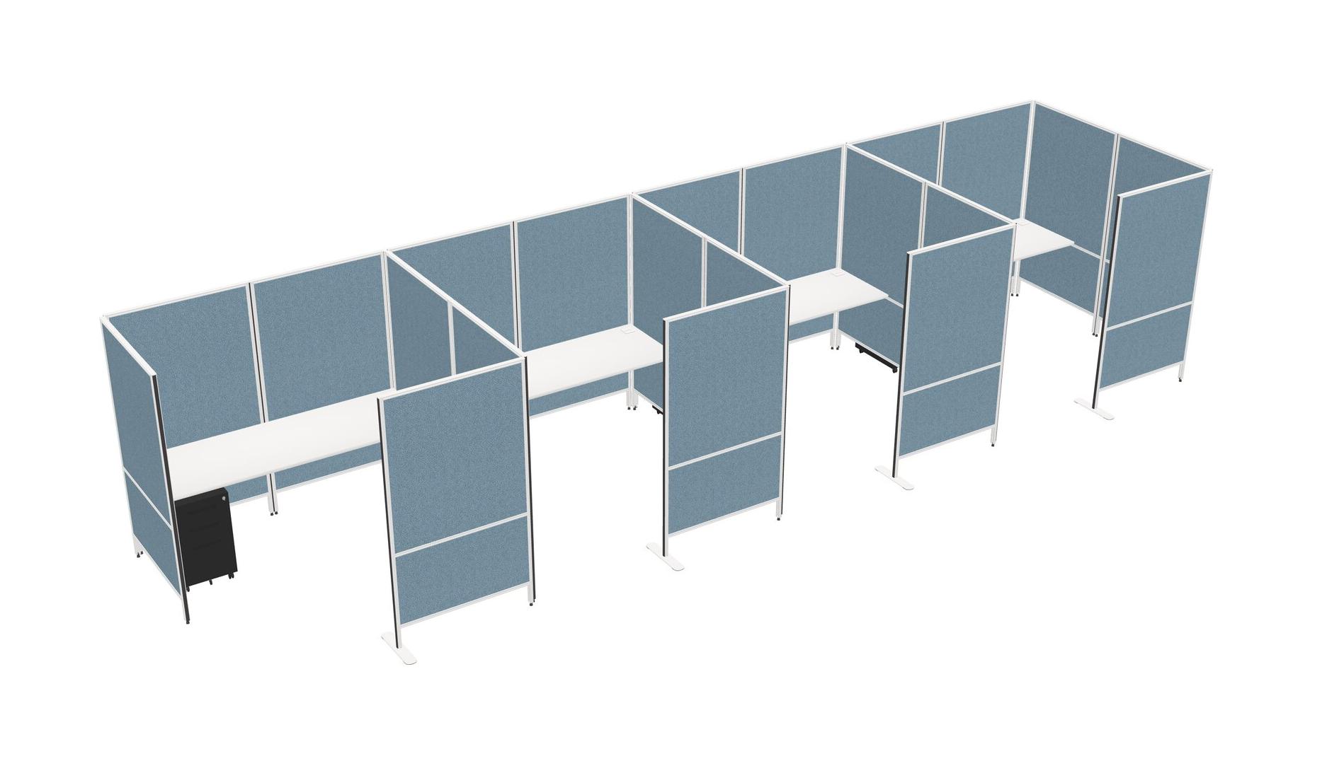 White Flexible Panel System With Privacy For 4 + Metal Mobile Drawers