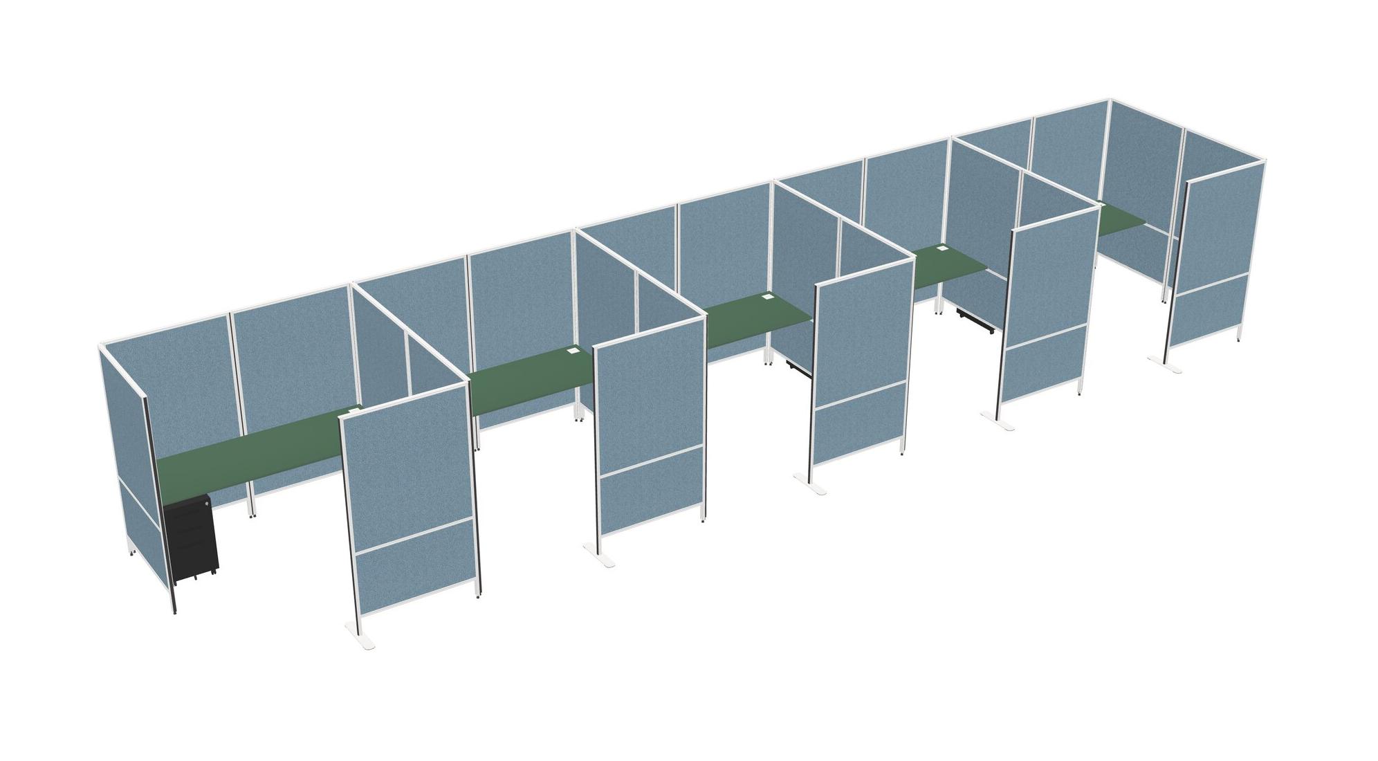 Green Flexible Panel System With Privacy For 5 + Metal Mobile Drawers