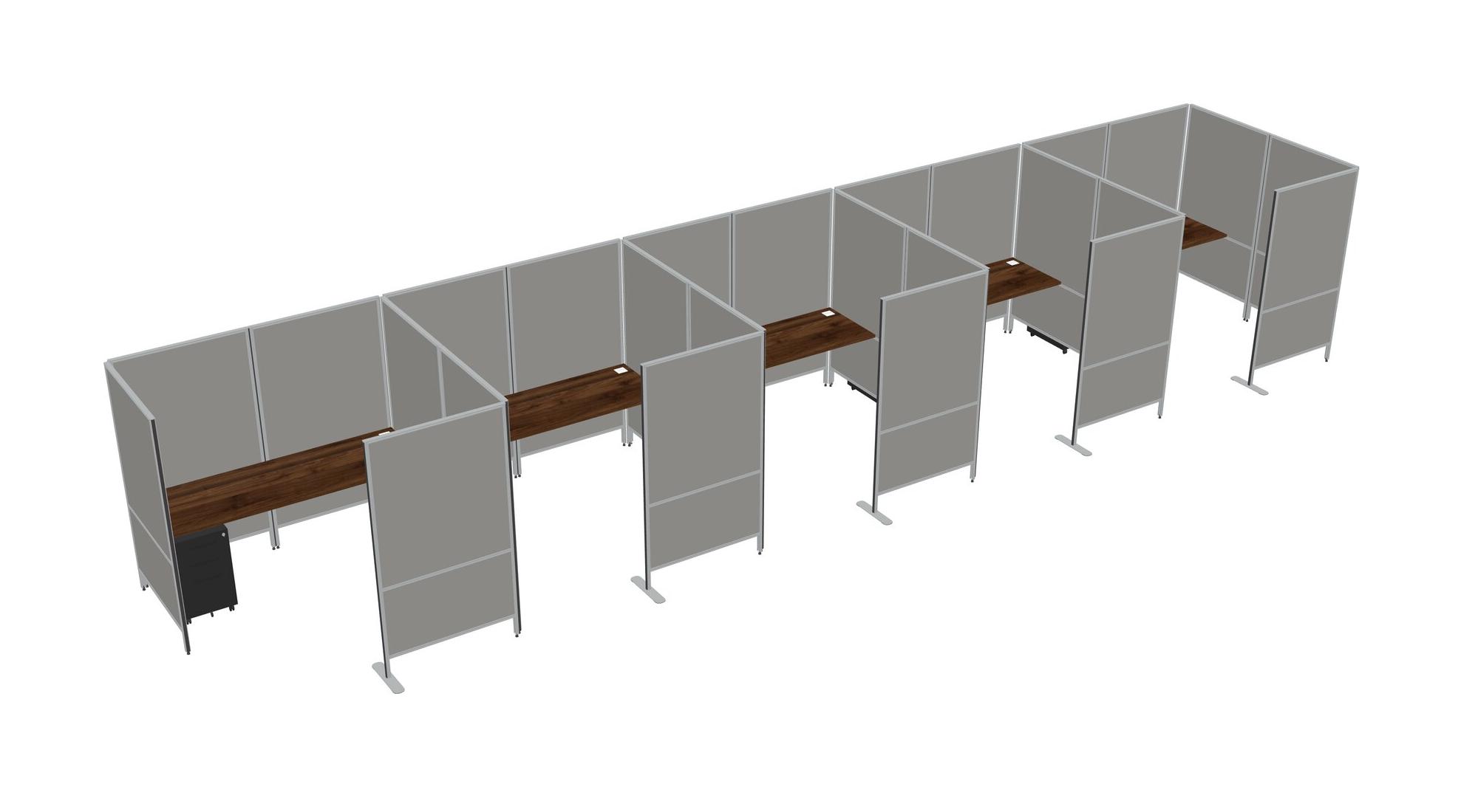 Columbia Walnut Flexible Panel System With Privacy For 5 + Metal Mobile Drawers