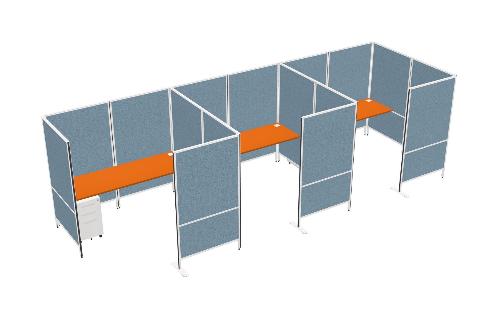 Orange Flexible Panel System With Privacy For 3 + Metal Mobile Drawers