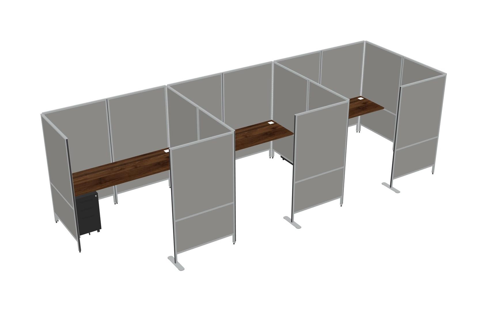 Columbia Walnut Flexible Panel System With Privacy For 3 + Metal Mobile Drawers