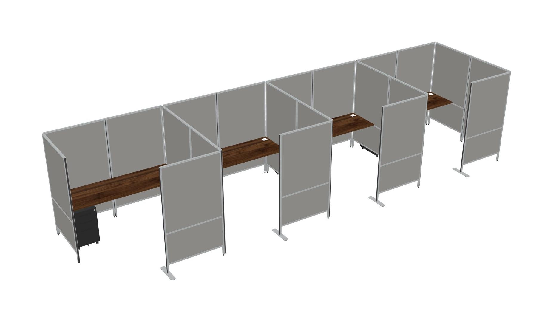 Columbia Walnut Flexible Panel System With Privacy For 4 + Metal Mobile Drawers