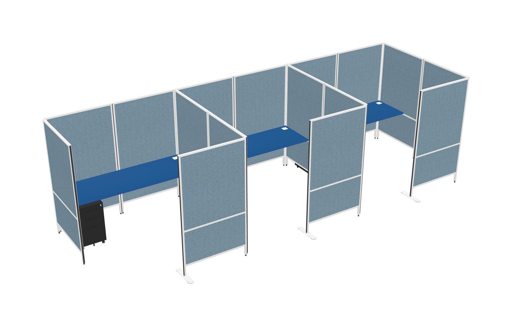 Prism Blue Flexible Panel System With Privacy For 3 + Metal Mobile Drawers