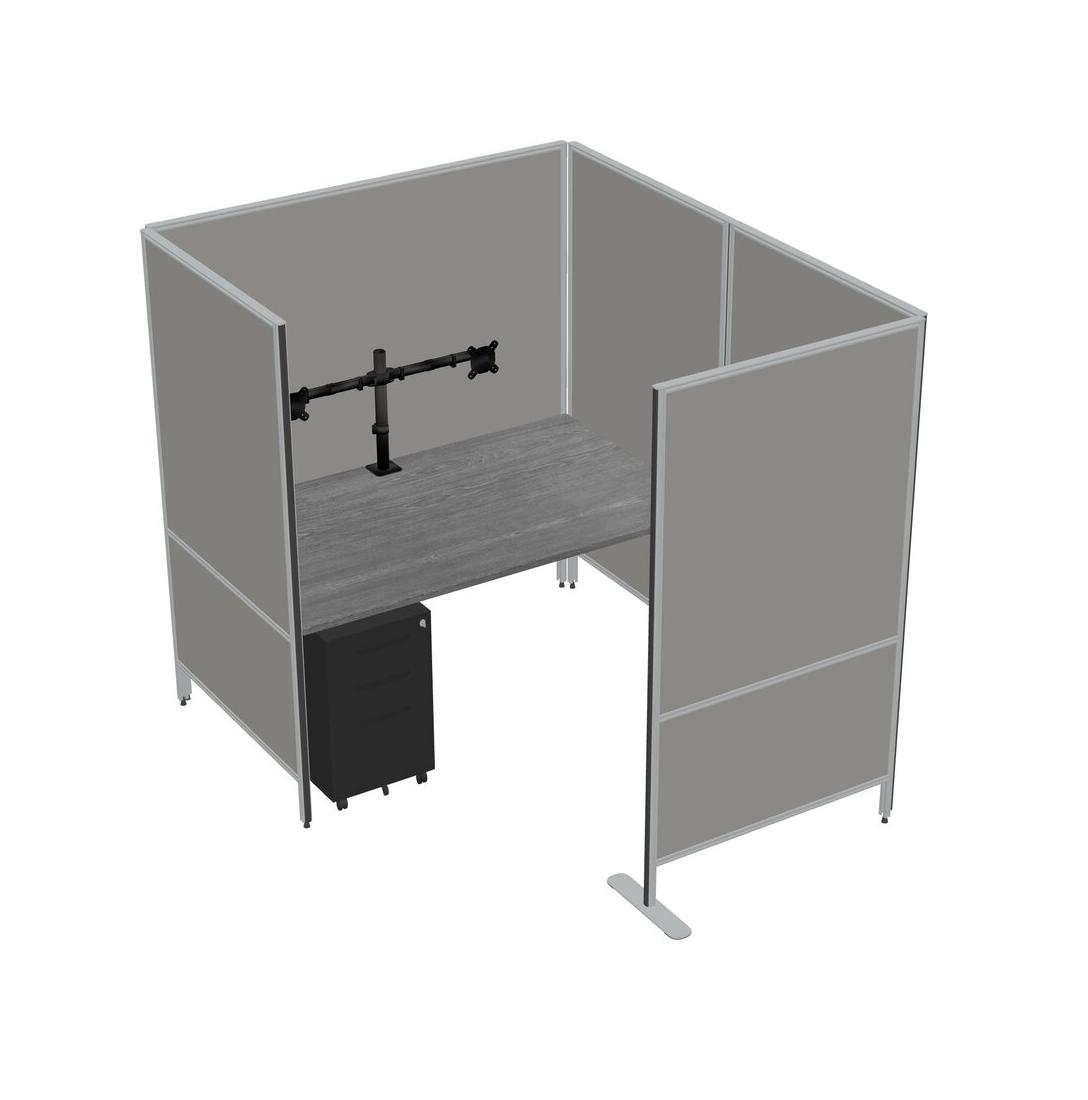 Grey Flexible Panel System With Privacy For 1 + Metal Mobile Drawers + Monitor Arm (double Arms)