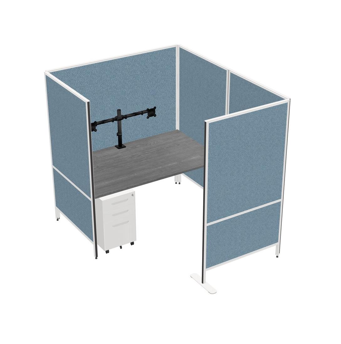 Grey Flexible Panel System With Privacy For 1 + Metal Mobile Drawers + Monitor Arm (double Arms)