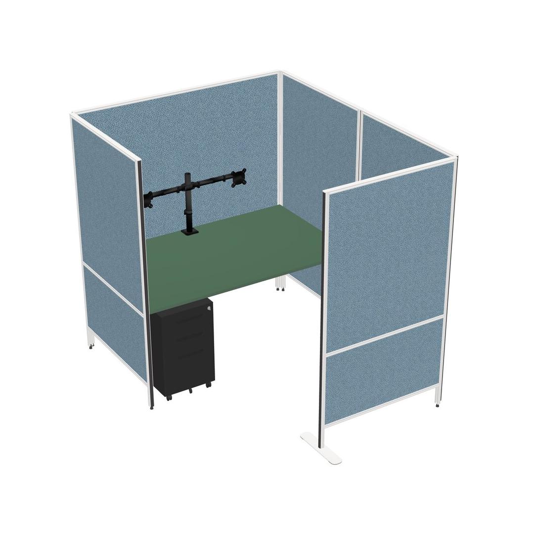 Green Flexible Panel System With Privacy For 1 + Metal Mobile Drawers + Monitor Arm (double Arms)