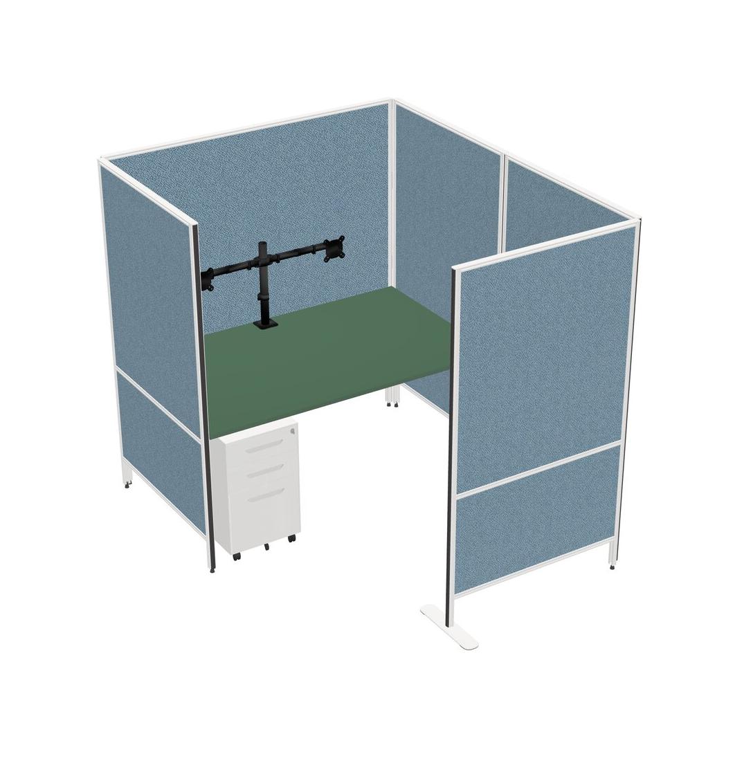 Green Flexible Panel System With Privacy For 1 + Metal Mobile Drawers + Monitor Arm (double Arms)