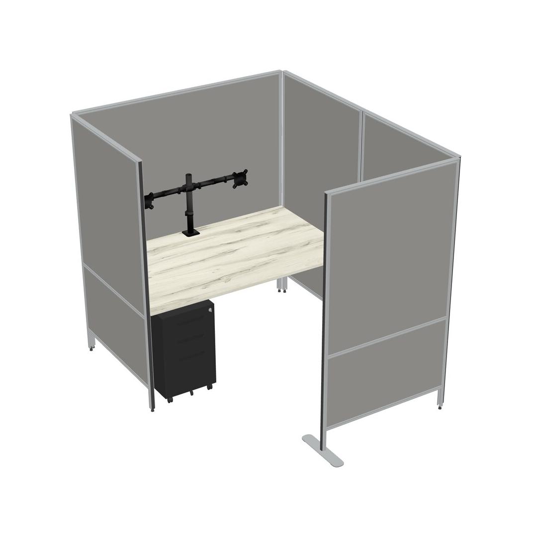 Heinne Holz Flexible Panel System With Privacy For 1 + Metal Mobile Drawers + Monitor Arm (double Arms)