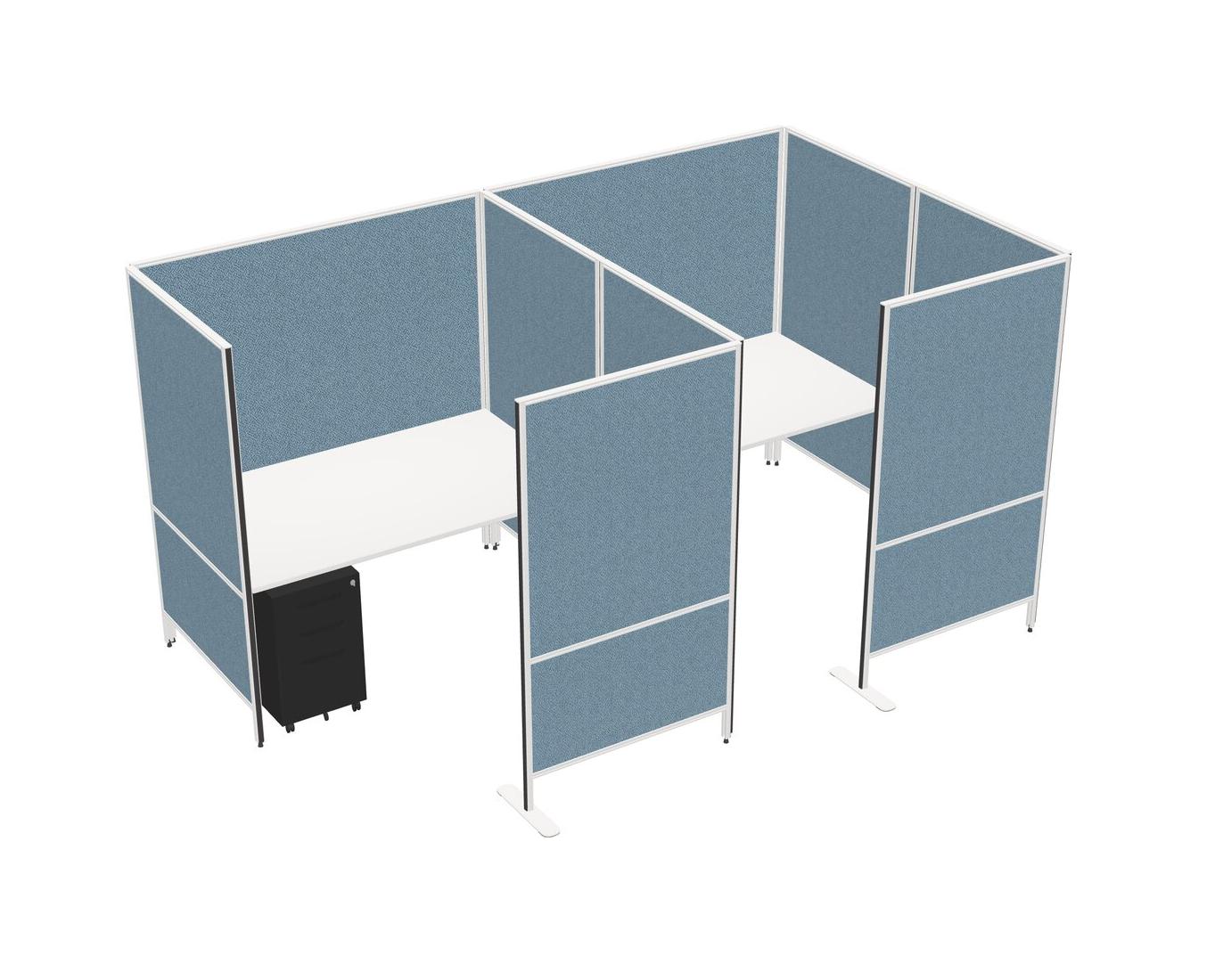 White Flexible Panel System With Privacy For 2 + Metal Mobile Drawers
