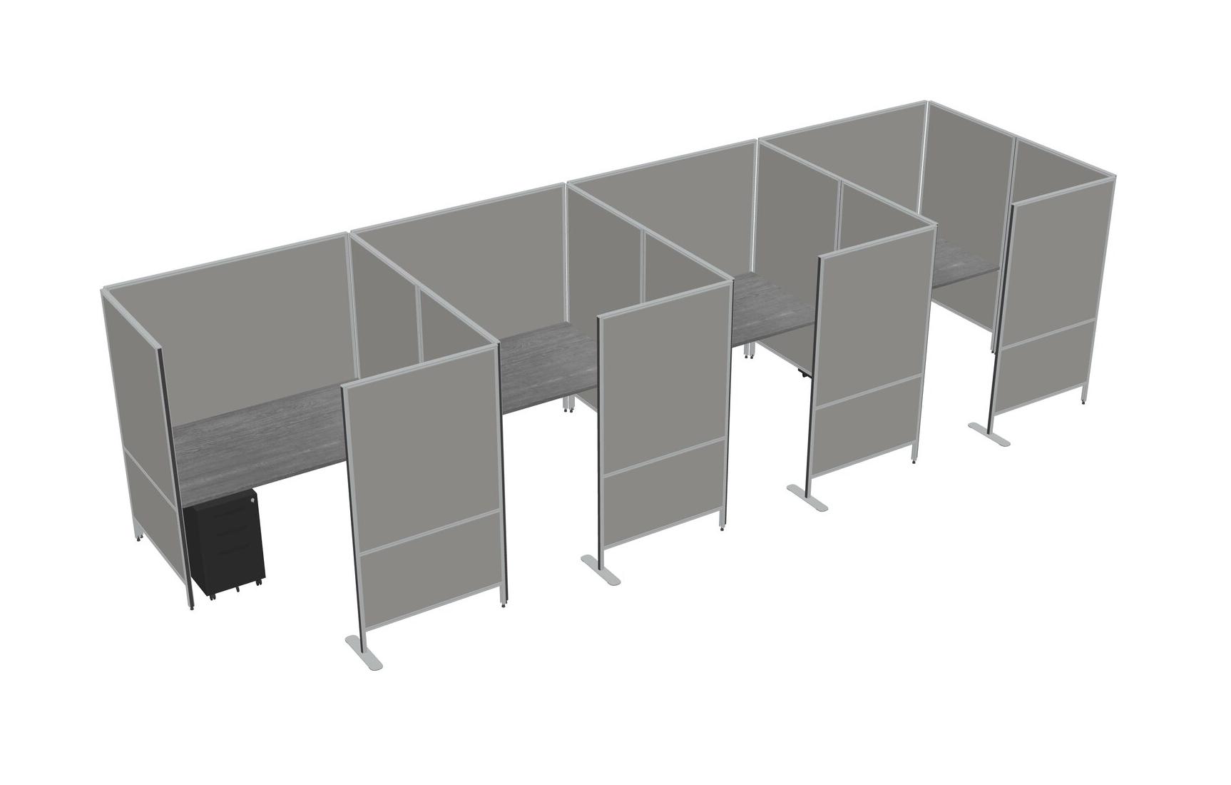 Grey Flexible Panel System With Privacy For 4 + Metal Mobile Drawers