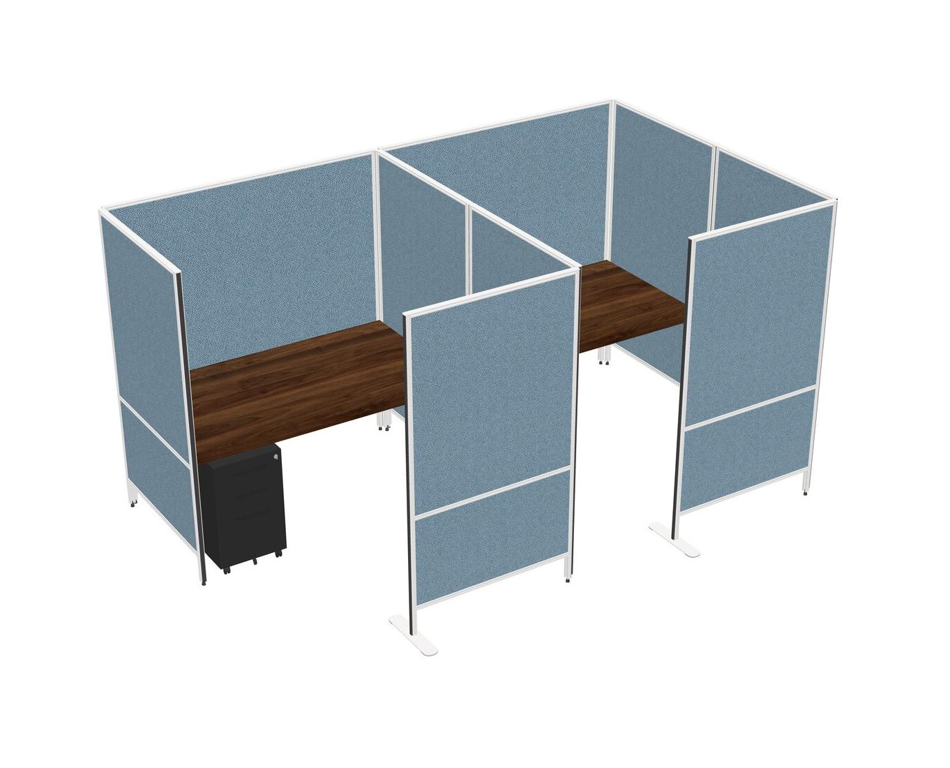 Columbia Walnut Flexible Panel System With Privacy For 2 + Metal Mobile Drawers