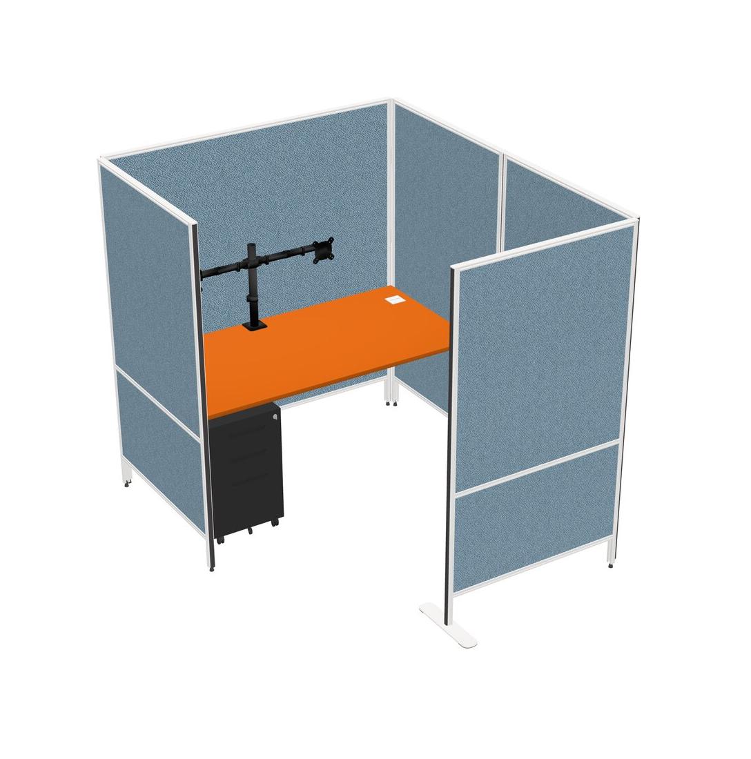 Orange Flexible Panel System With Privacy For 1 + Metal Mobile Drawers + Monitor Arm (double Arms)