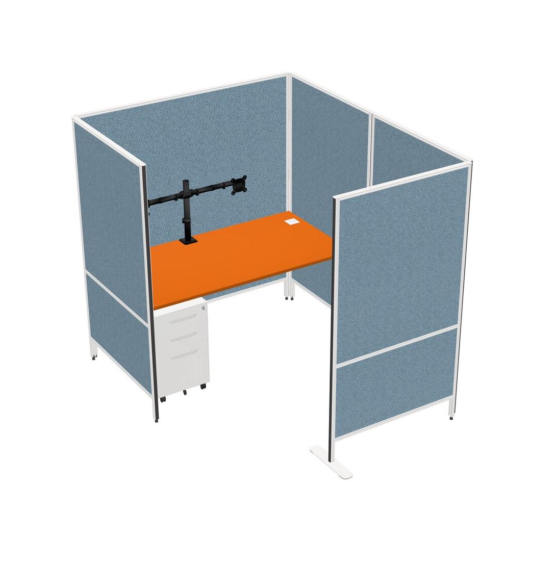 Orange Flexible Panel System With Privacy For 1 + Metal Mobile Drawers + Monitor Arm (double Arms)