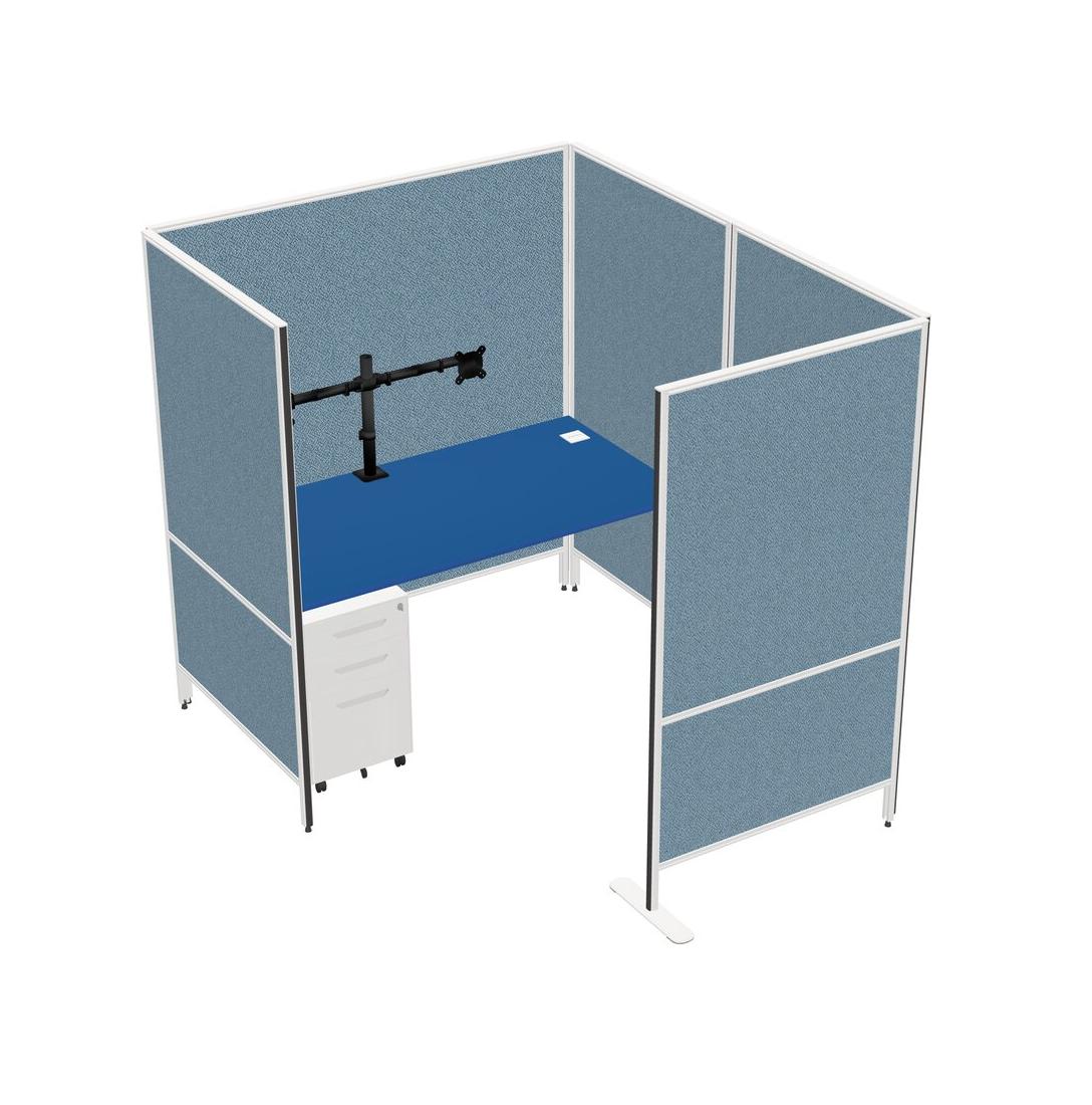 Prism Blue Flexible Panel System With Privacy For 1 + Metal Mobile Drawers + Monitor Arm (double Arms)
