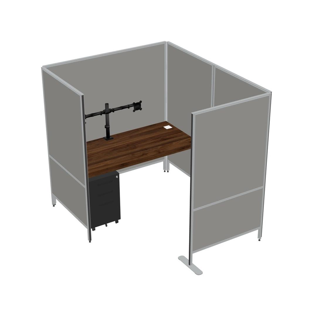 Columbia Walnut Flexible Panel System With Privacy For 1 + Metal Mobile Drawers + Monitor Arm (double Arms)