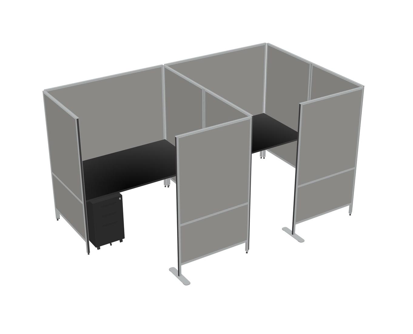 Black Flexible Panel System With Privacy For 2 + Metal Mobile Drawers