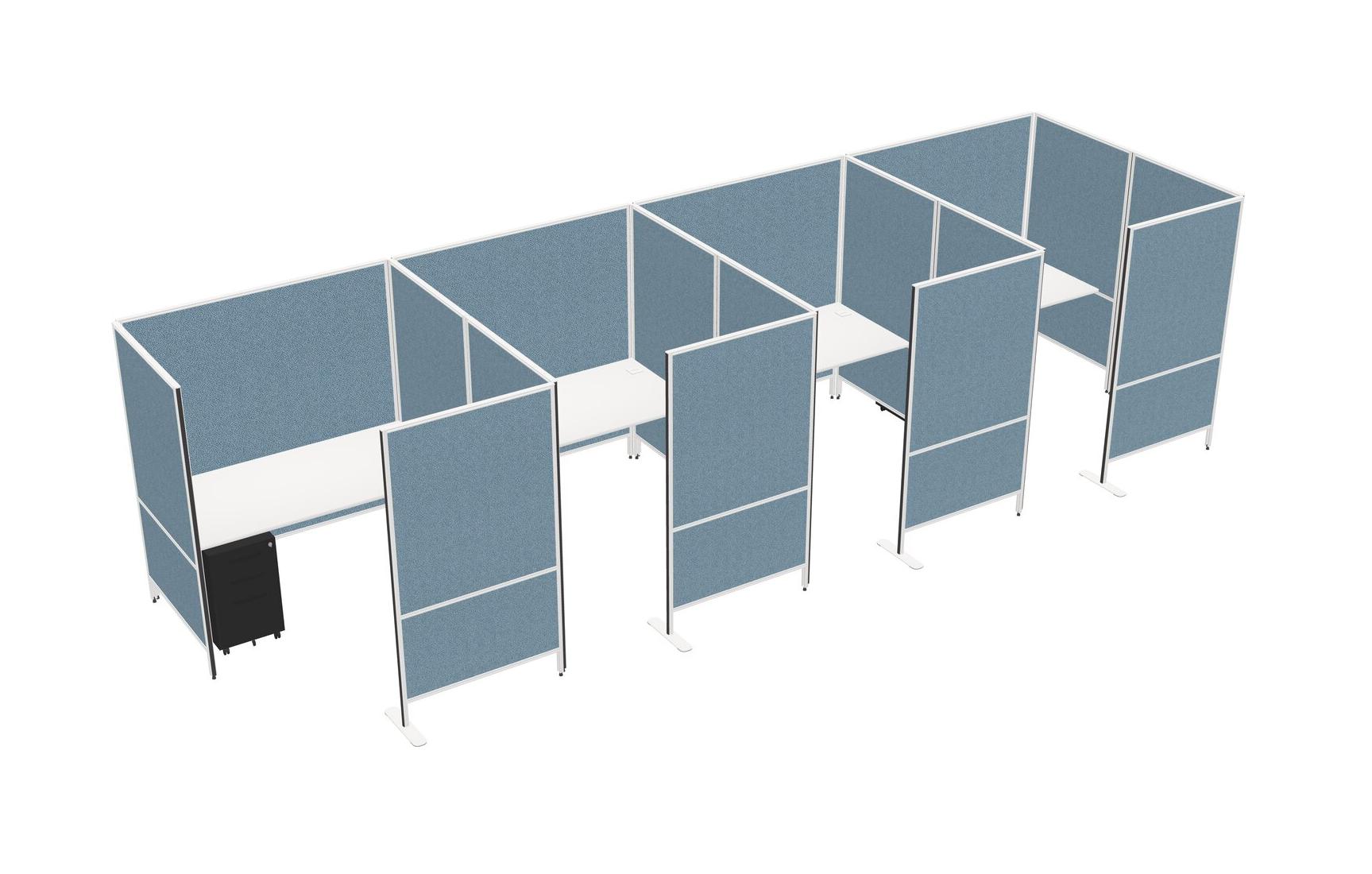 White Flexible Panel System With Privacy For 4 + Metal Mobile Drawers