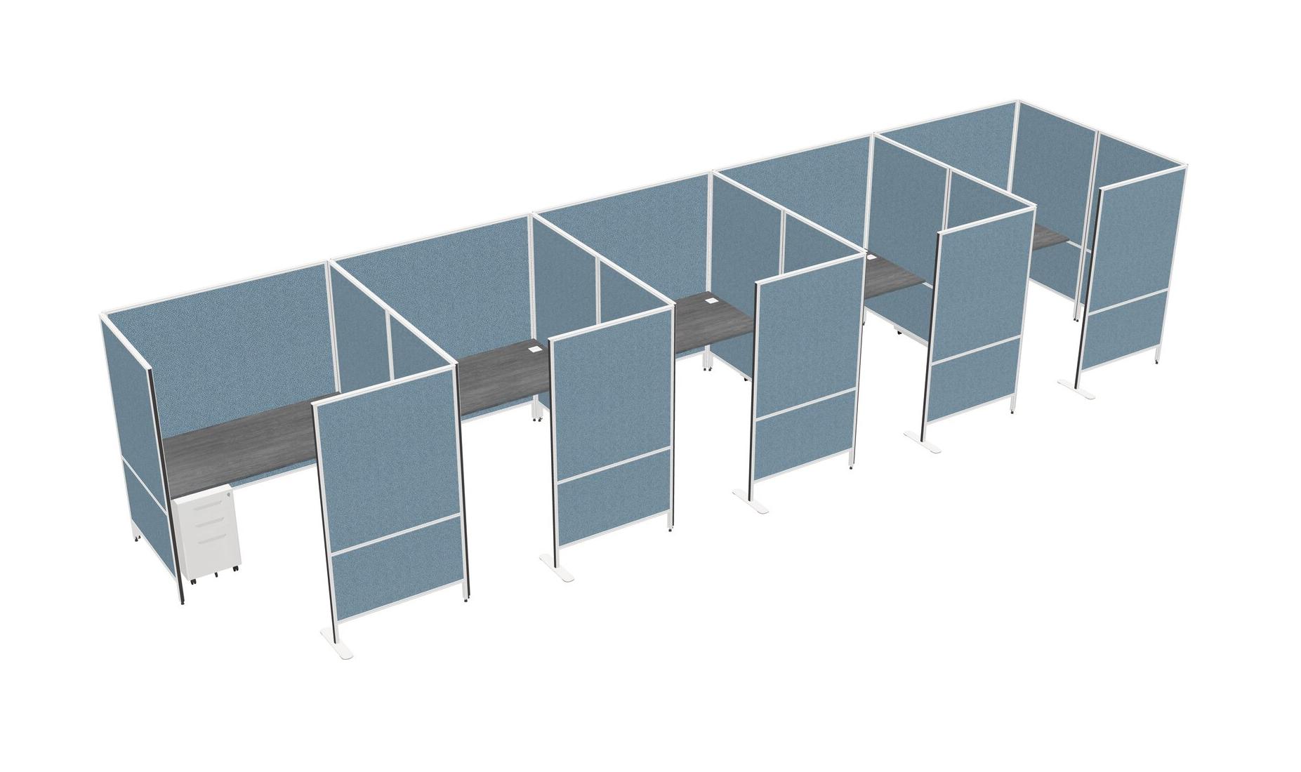 Grey Flexible Panel System With Privacy For 5 + Metal Mobile Drawers