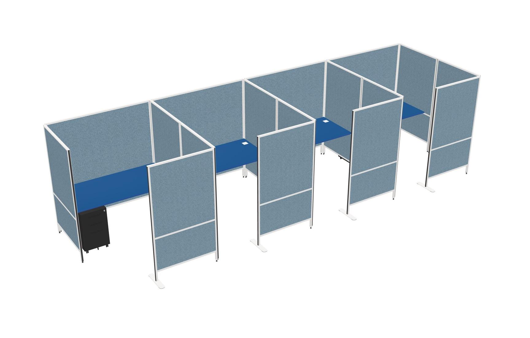 Prism Blue Flexible Panel System With Privacy For 4 + Metal Mobile Drawers