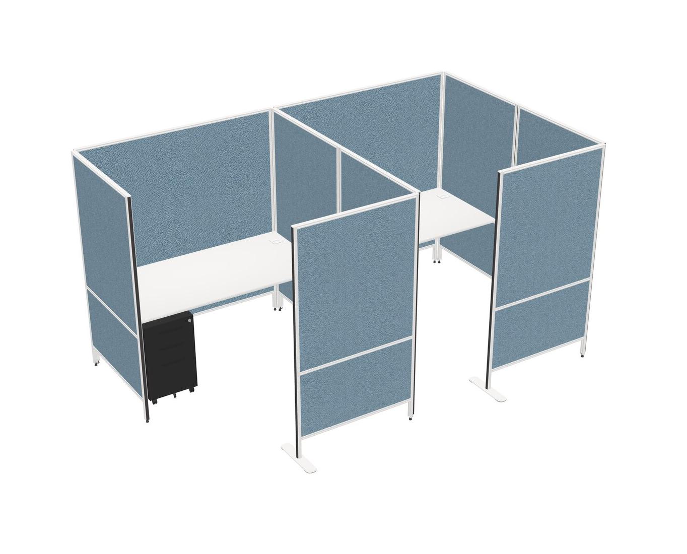 White Flexible Panel System With Privacy For 2 + Metal Mobile Drawers