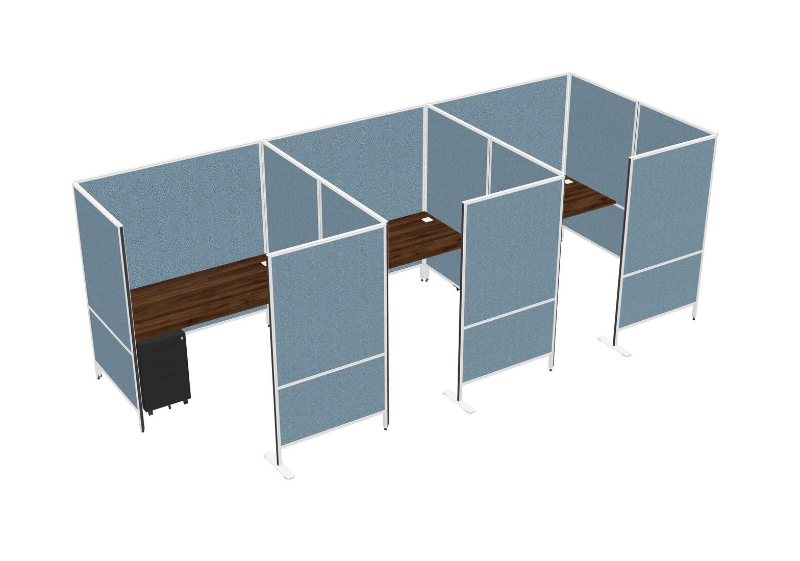 Columbia Walnut Flexible Panel System With Privacy For 3 + Metal Mobile Drawers
