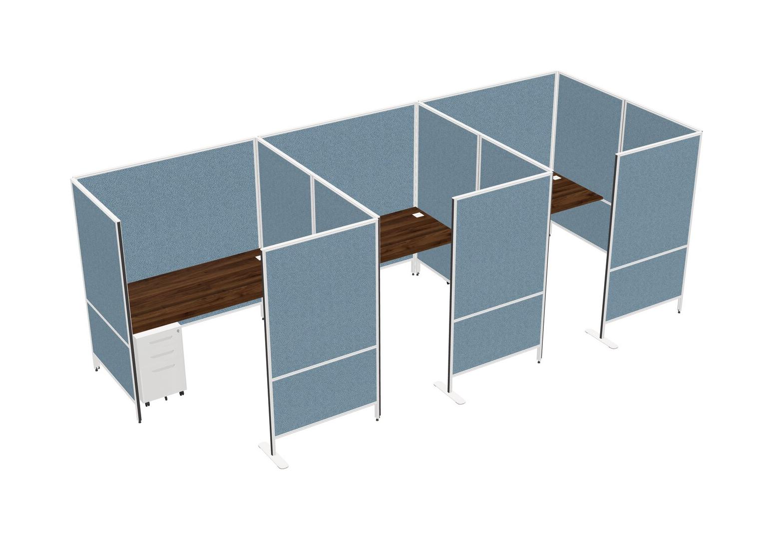Columbia Walnut Flexible Panel System With Privacy For 3 + Metal Mobile Drawers