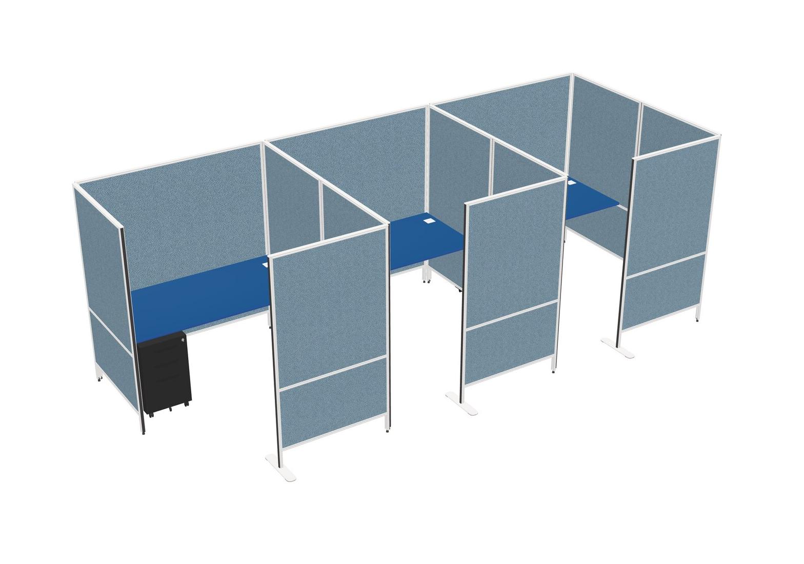 Prism Blue Flexible Panel System With Privacy For 3 + Metal Mobile Drawers
