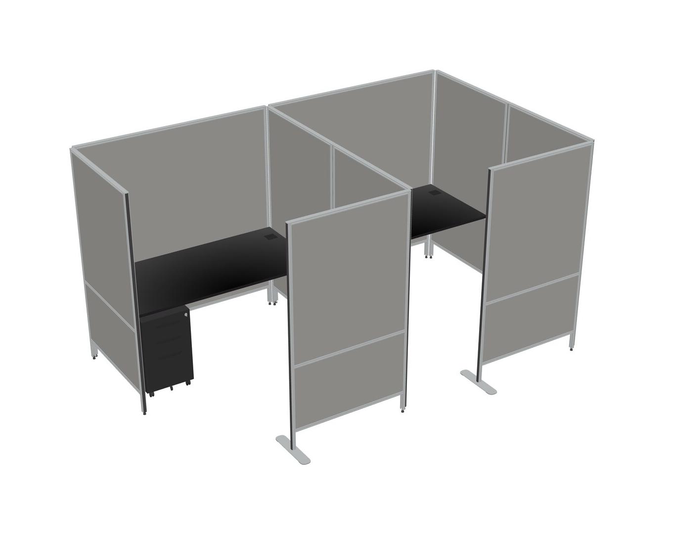 Black Flexible Panel System With Privacy For 2 + Metal Mobile Drawers