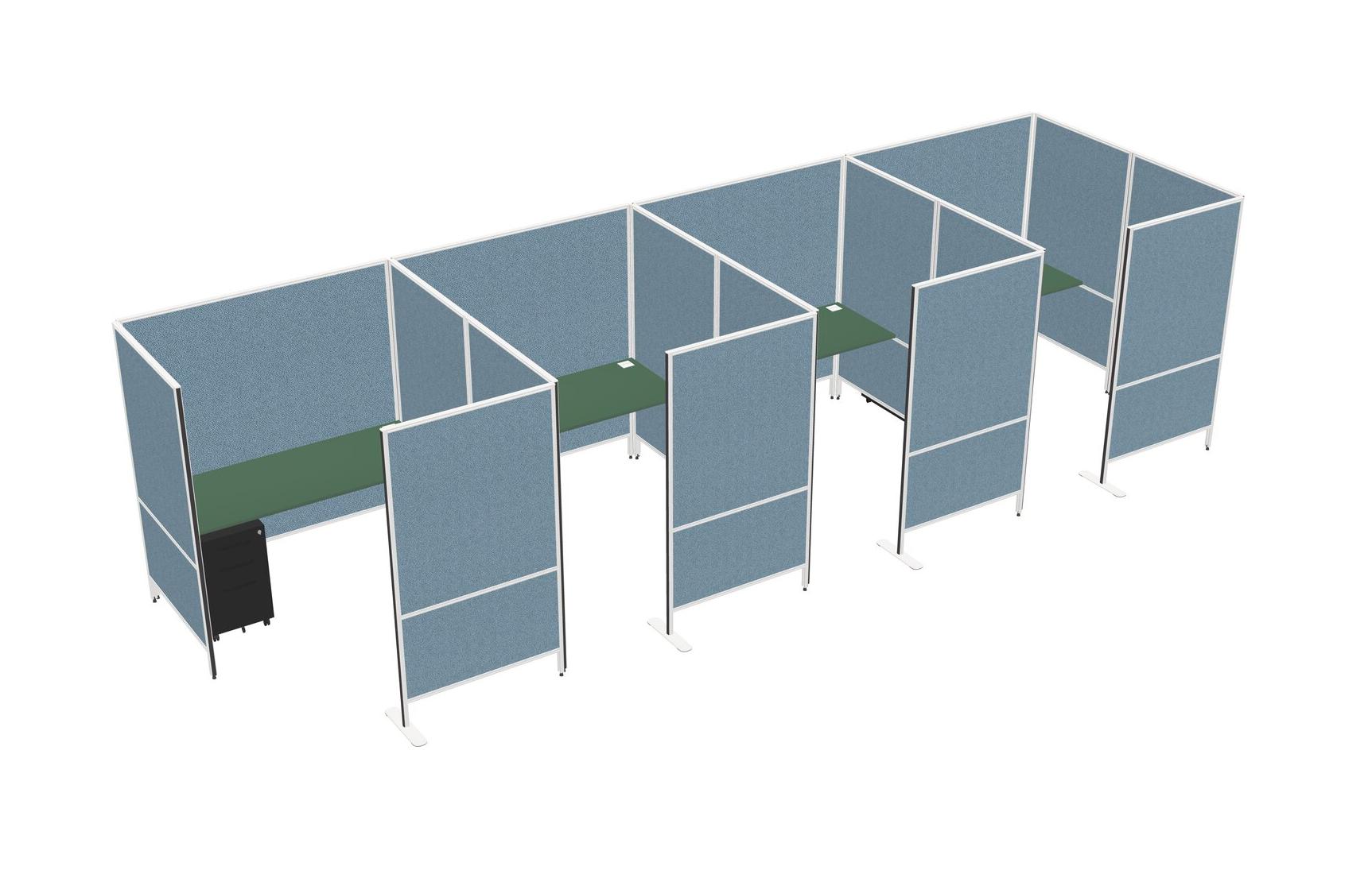 Green Flexible Panel System With Privacy For 4 + Metal Mobile Drawers