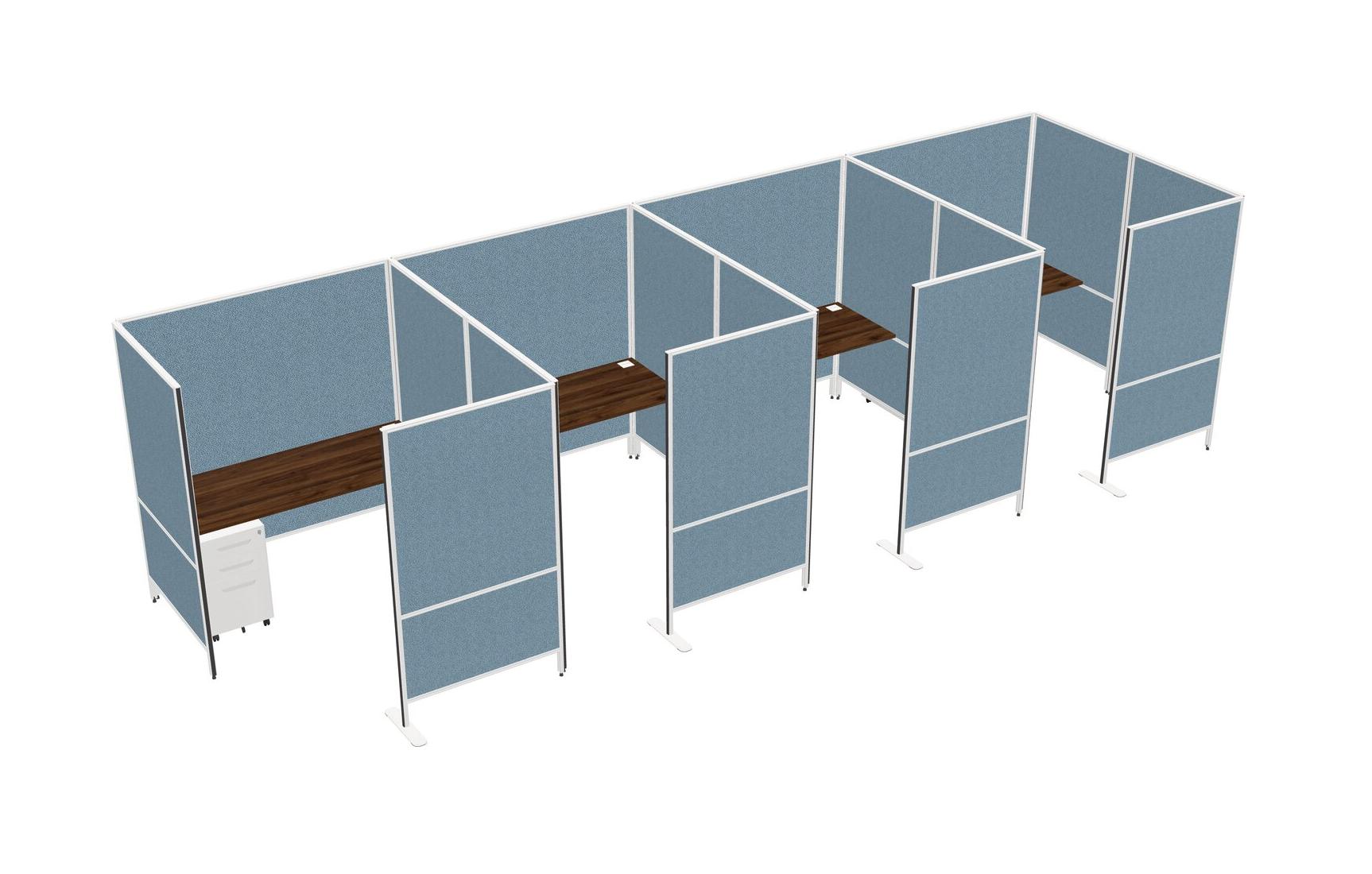 Columbia Walnut Flexible Panel System With Privacy For 4 + Metal Mobile Drawers