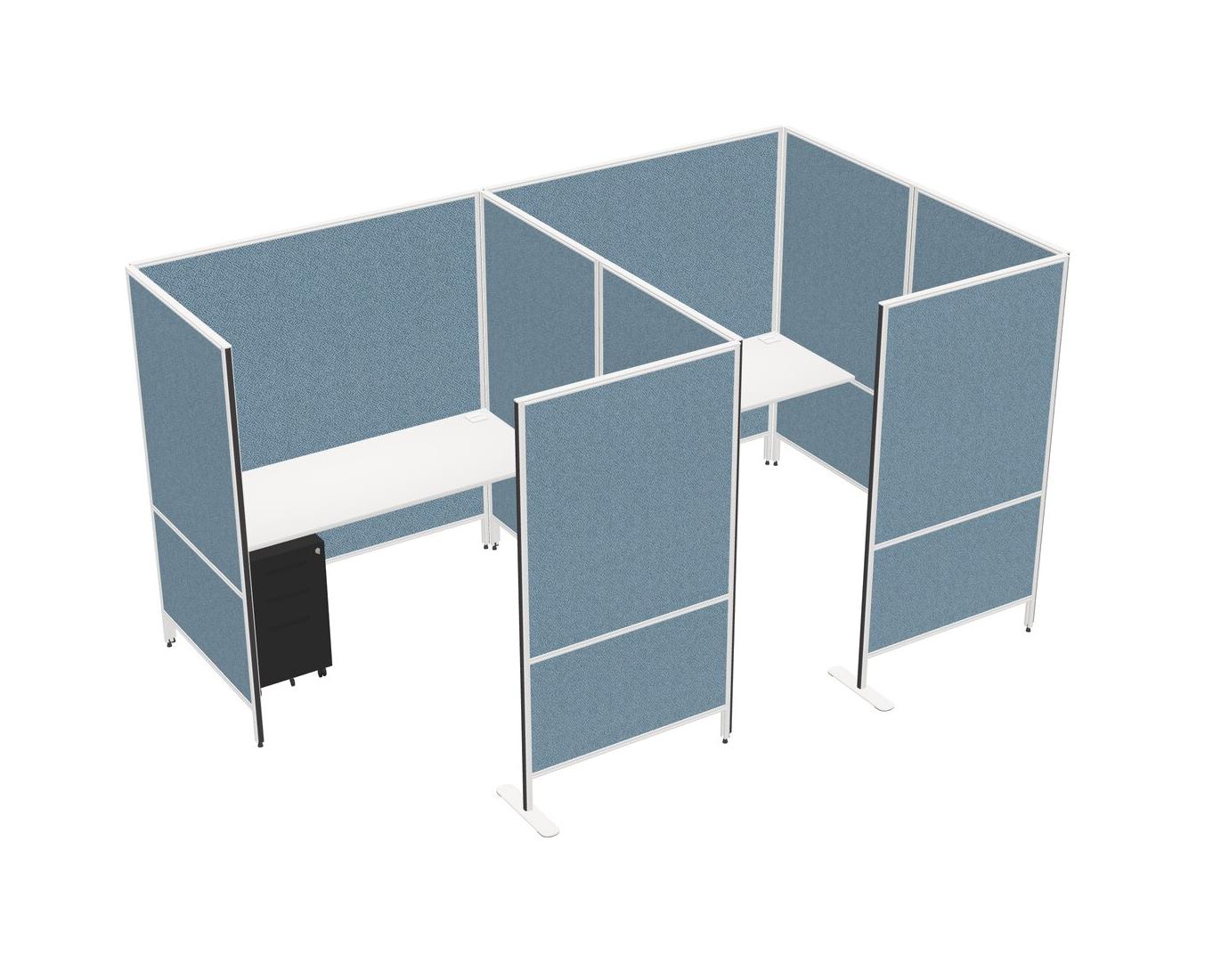 White Flexible Panel System With Privacy For 2 + Metal Mobile Drawers