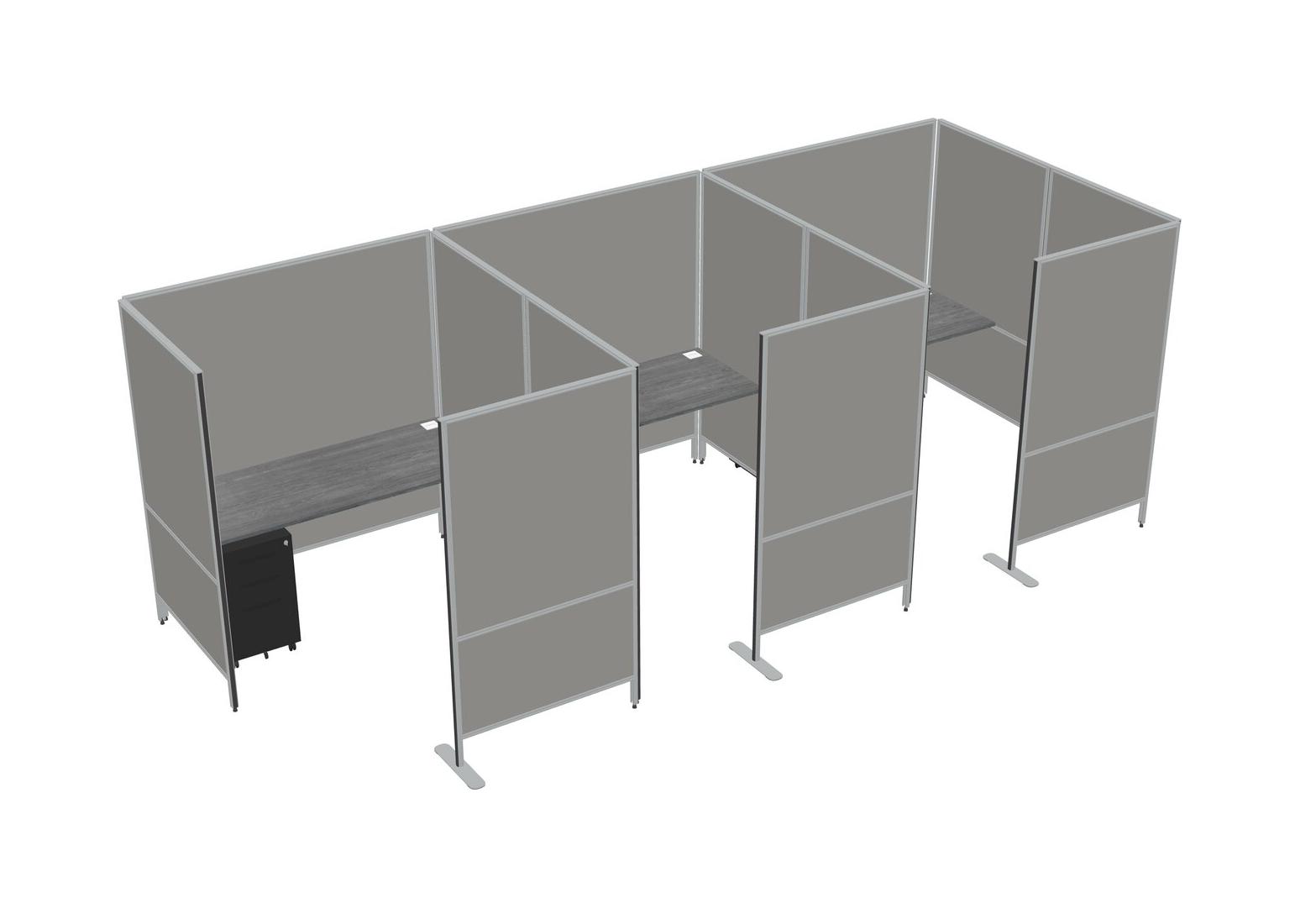 Grey Flexible Panel System With Privacy For 3 + Metal Mobile Drawers